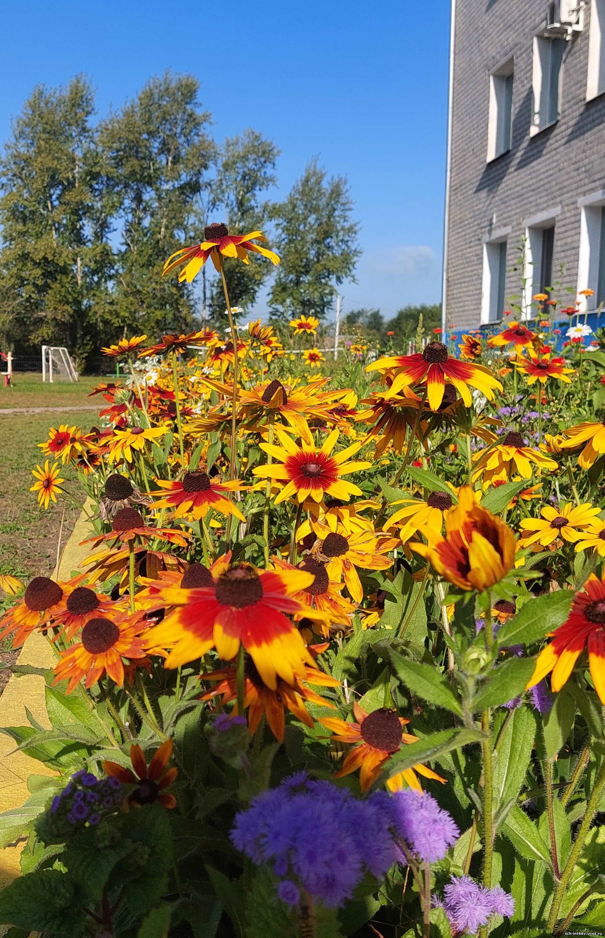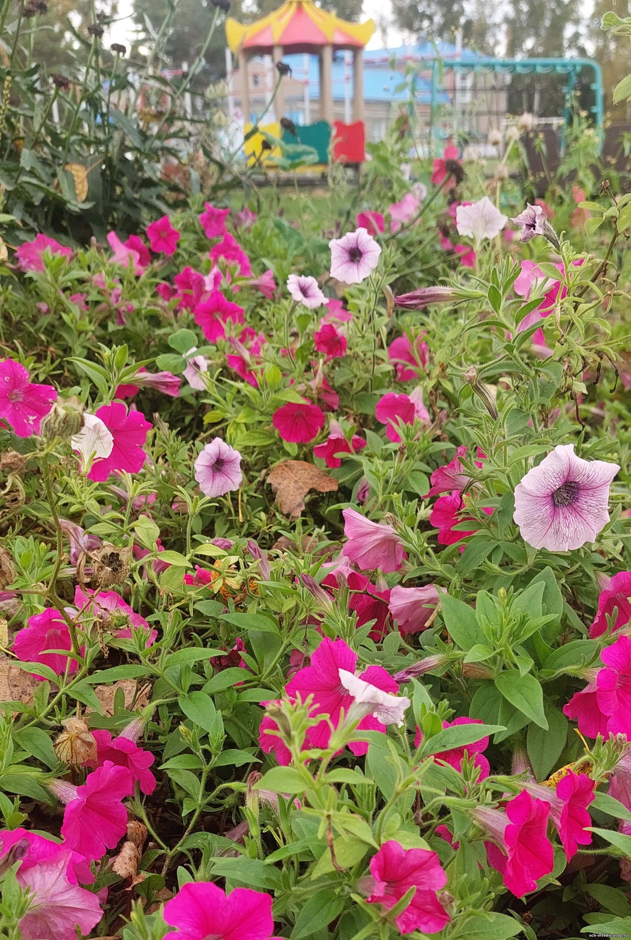 Цветы осенью выглядят особенными и выделяются на фоне тускнеющей природы. Зелень потихоньку сходит с деревьев и растений, приводя природу к одной цветовой гамме и на первый план выходят петунии, цинии, бархатцы, лилейники, хоста, аллисум.