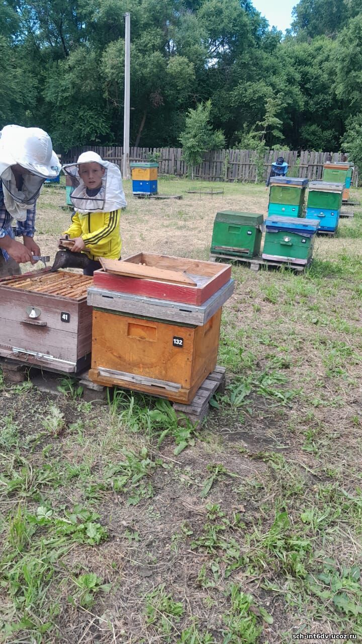 Сегодня ребята посетили пасеку семьи Черновых в селе Зелёный Бор. Степан Степанович Чернов с 2009 года занимается пчеловодством. Направление личного подсобного хозяйства выбрал неслучайно. С детства он постигал секреты этого древнейшего ремесла. Его отец содержал пасеку, а бабушка работала на совхозной пасеке. А когда пришла пора, отец передал в наследство 15 пчелосемей.