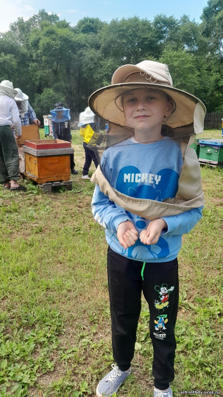 После радушного приема хозяин проводил детей на пасеку к самым мирным пчелам и ознакомил с их жизнью. Участники экскурсии надели специальные маски с сеткой для защиты головы и лица от укусов пчел. Рассказ о том, как устроен пчелиный дом, об иерархии пчелиного мира, и как пчелки делают мед – все это очень познавательно!