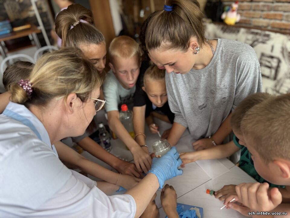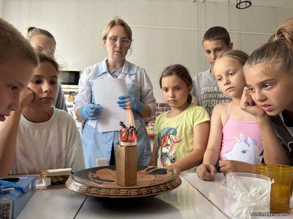Для ребят провели четыре мастер-класса, показали фокусы: «Извержение вулкана», «Искусственная кровь», «Дым без огня» и «Воздушная пена».